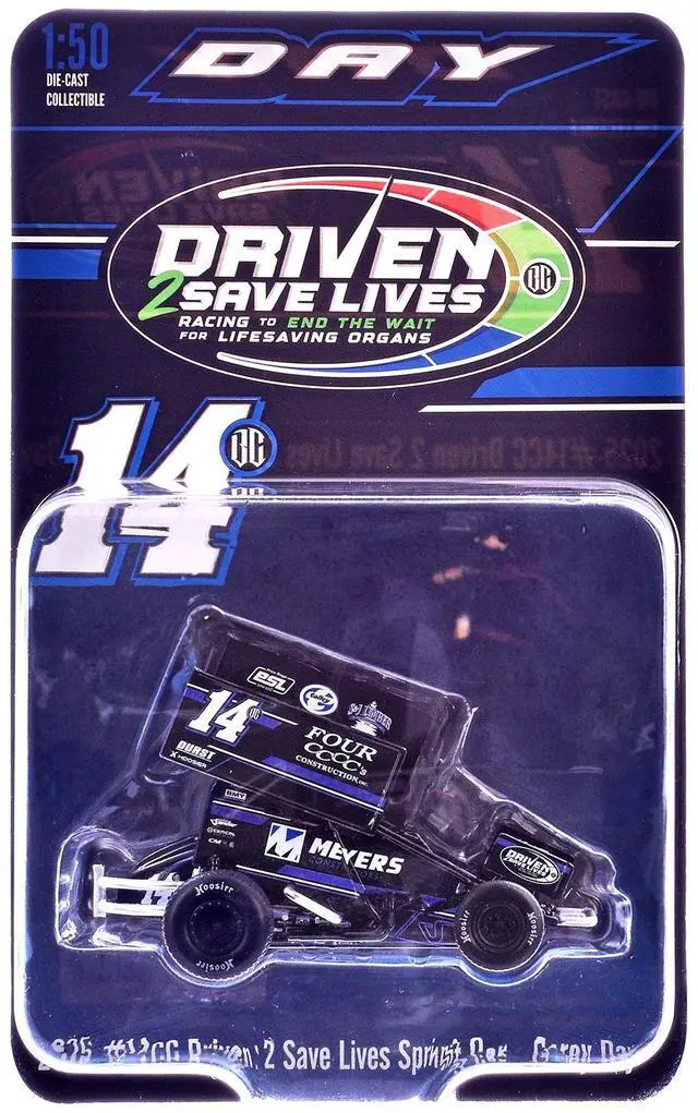 Brand new 1/50 scale diecast car model of Winged Sprint Car #14CC Corey Day (Blue Version) "Driven 2 Save Lives" Jason Meyers Racing (2025) die cast model car by ACME.