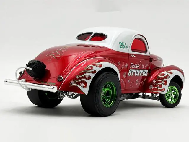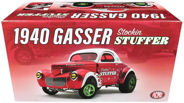 Brand new 1/18 scale diecast car model of 1940 Gasser "Stockin Stuffer" Red Chrome with White Top and Graphics Limited Edition to 126 pieces Worldwide die cast model car by ACME.