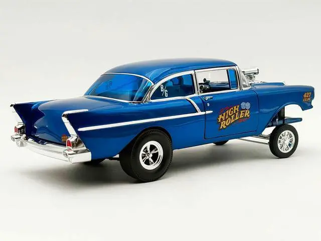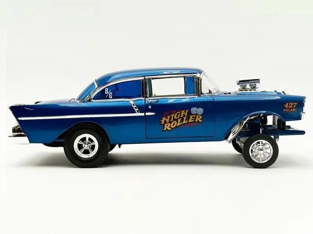 Brand new 1/18 scale diecast car model of 1957 Chevrolet 150 Gasser "High Roller" Blue Metallic Limited Edition to 300 pieces Worldwide die cast model car by ACME.