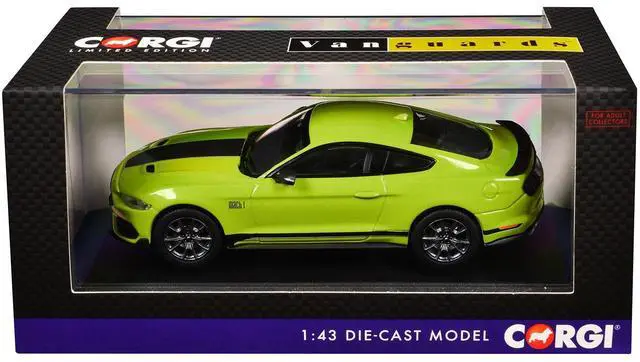 Brand new 1/43 scale die cast car model of Ford Mustang Mk6 Mach 1 RHD (Right Hand Drive) Grabber Yellow with Black Stripes "Vanguards" Series die-cast model car by Corgi.