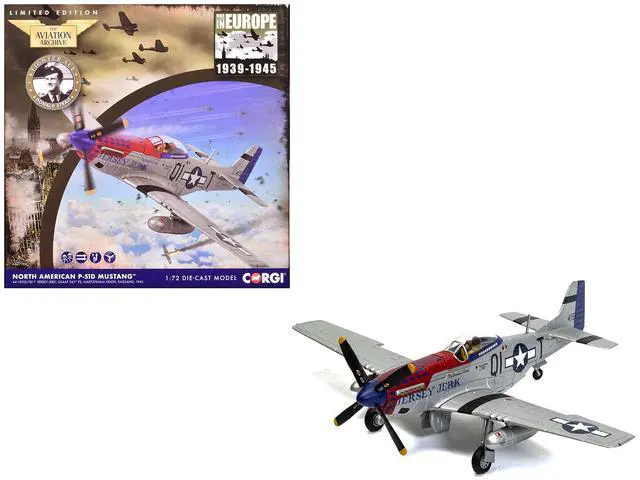 Brand new 1/72 scale diecast model of North American P-51D Mustang Aircraft "Jersey Jerk, 361st Fighter Squadron, Martlesham Heath" United States Army Air Forces "The Aviation Archive" Series die cast model by Corgi.