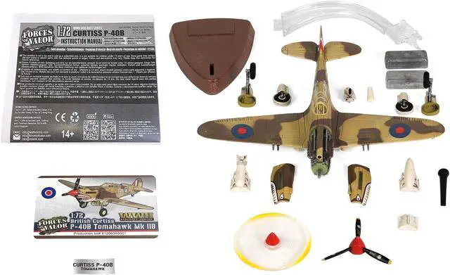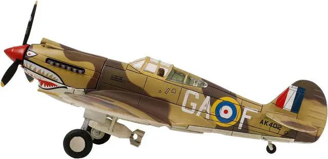 Brand new 1/72 scale diecast model of Curtiss P-40B Tomahawk MK IIB Aircraft Fighter "112 Squadron (Royal Air Force), AK402, GA-F, North Africa" (October 1941) "WW2 Aircrafts Series" die cast model by Forces of Valor.