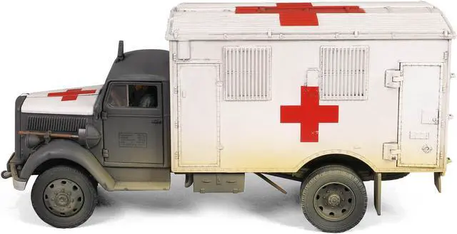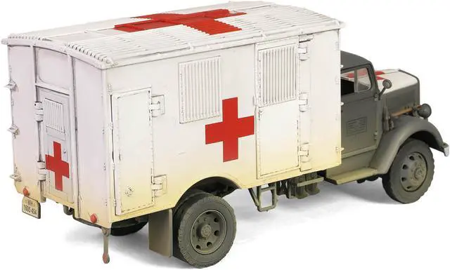 Brand new 1/32 scale diecast model of Opel-Blitz Kfz. 305 Ambulance Gray and White (Weathered) "German Army" "Armoured Fighting Vehicle" Series die cast model by Forces of Valor.