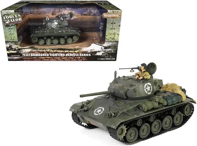 Brand new 1/32 scale diecast model of M24 Chaffee Light Tank "8th Armored Division, 36th Tank Batallion, Rheinberg, Germany, World War II" (1945) United States Army "Armoured Fighting Vehicle" Series die cast model by Forces of Valor.