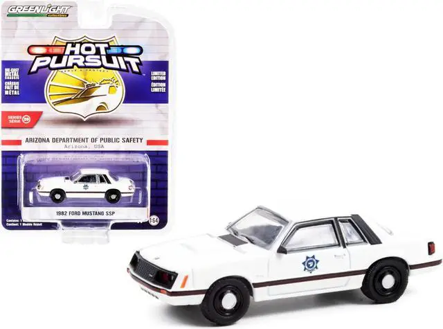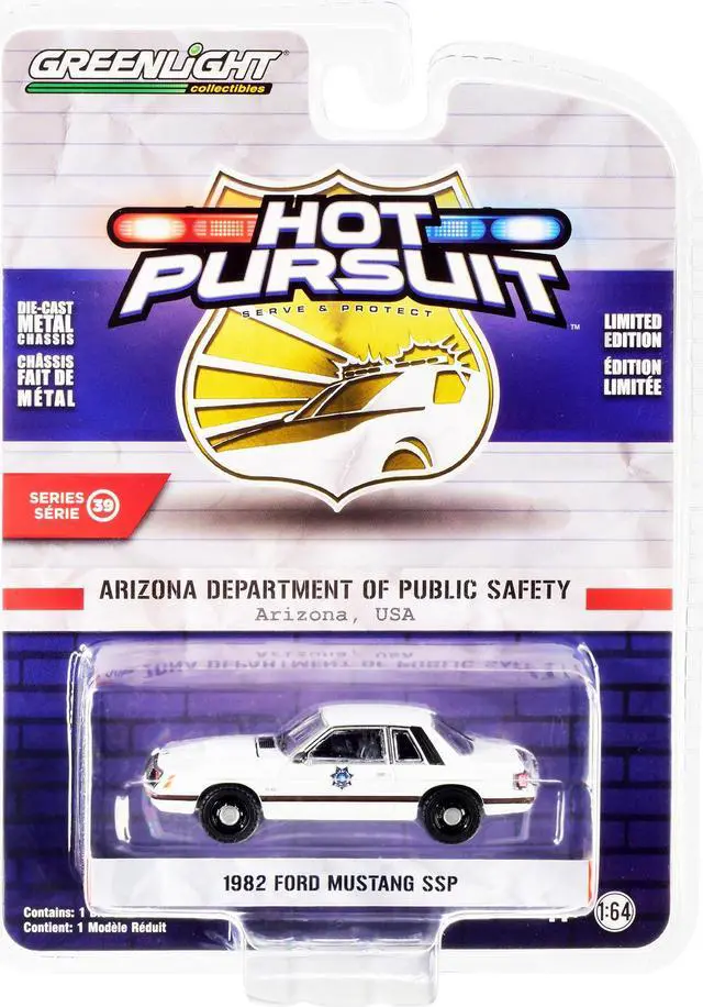 Brand new 1/64 scale diecast car model of 1982 Ford Mustang SSP White "Arizona Department of Public Safety" "Hot Pursuit" Series 39 die cast model car by Greenlight.