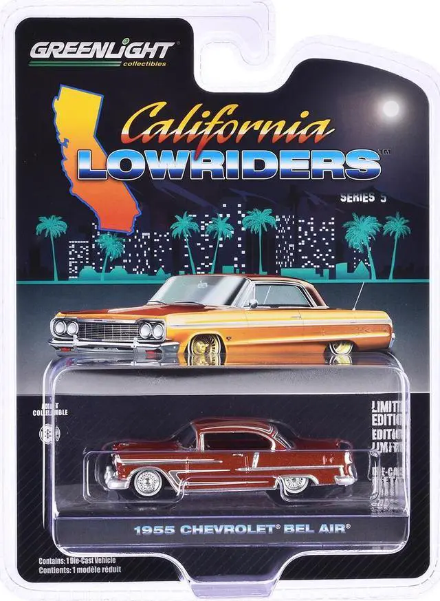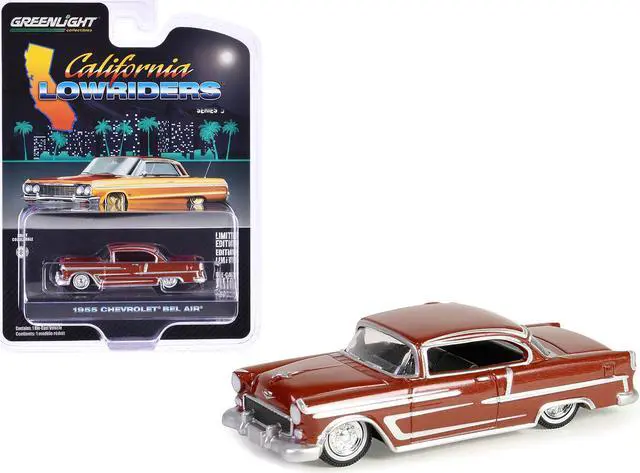 Brand new 1/64 scale diecast car model of 1955 Chevrolet Bel Air Lowrider Red Metallic and Silver "California Lowriders" Series 5 die cast model car by Greenlight.