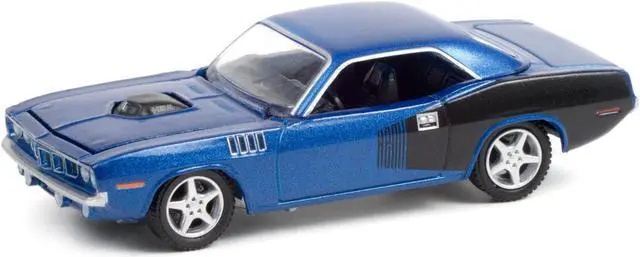 Brand new 1/64 scale diecast car model of 1970 Plymouth Barracuda Custom Hardtop Blue Metallic and Black with Modern HEMI Lettering (Lot #720) Barrett Jackson "Scottsdale Edition" Series 7 die cast model car by Greenlight.