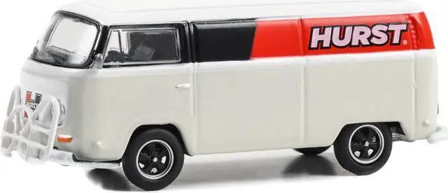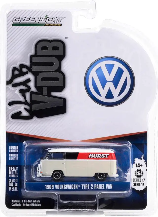 Brand new 1/64 scale diecast car model of 1969 Volkswagen Type 2 Panel Van White with Black and Red Stripes "Hurst Shifters" "Club Vee V-Dub" Series 17 die cast model car by Greenlight.