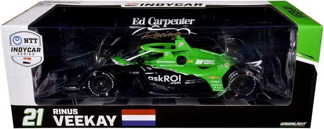 Brand new 1/18 scale diecast car model of Dallara IndyCar #21 Rinus VeeKay "Risk On International" Ed Carpenter Racing "NTT IndyCar Series" (2024) die cast model car by Greenlight.