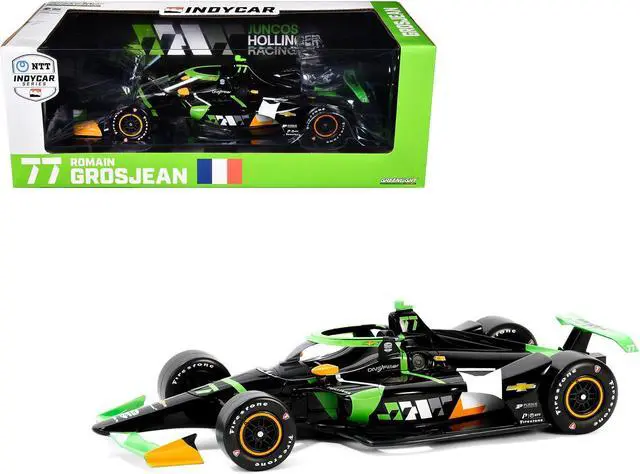 Brand new 1/18 scale diecast car model of Dallara IndyCar #77 Romain Grosjean "DNS Filter" Juncos Hollinger Racing "NTT IndyCar Series" (2024) die cast model car by Greenlight.