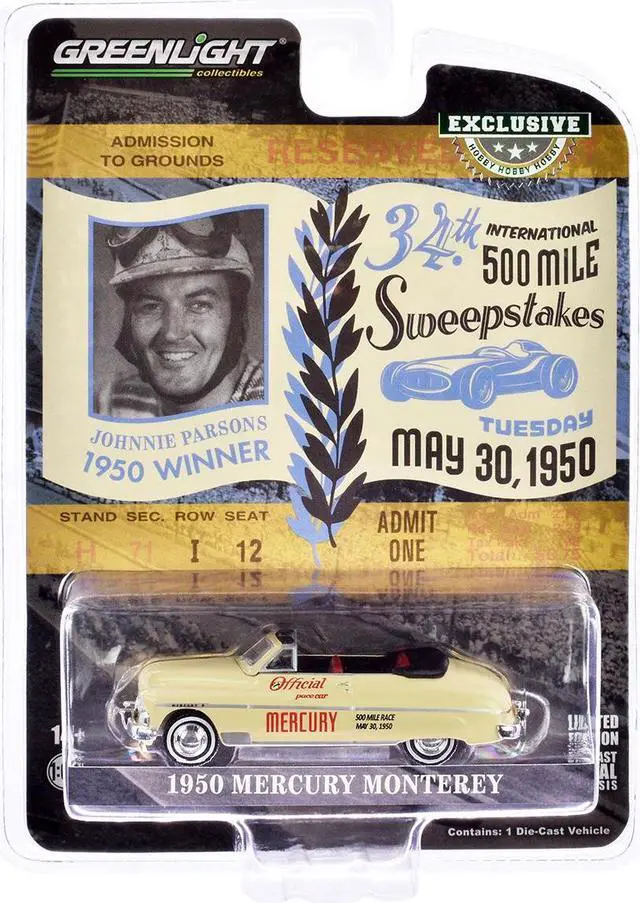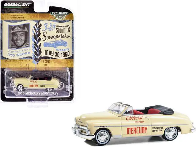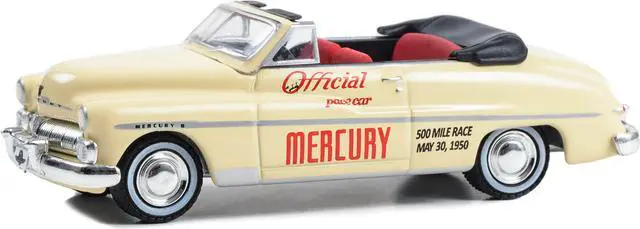 Brand new 1/64 scale diecast car model of 1950 Mercury Monterey Convertible Cream "Official Pace Car 34th International 500 Mile Sweepstakes" "Hobby Exclusive" Series die cast model car by Greenlight.