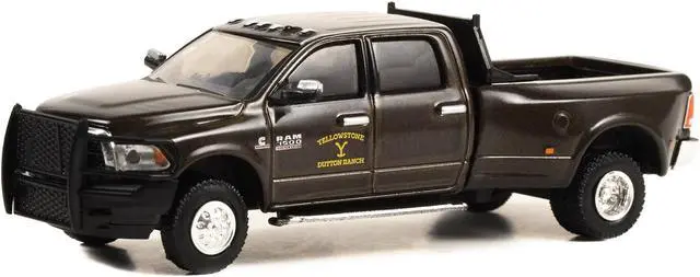 Brand new 1/64 scale diecast car model of 2017 Ram 3500 Laramie Dually Pickup Truck Brown Metallic "John Dutton - Yellowstone Dutton Ranch" "Yellowstone" (2018-Current) TV Series "Hollywood Series" Release 38 die cast model car by Greenlight.