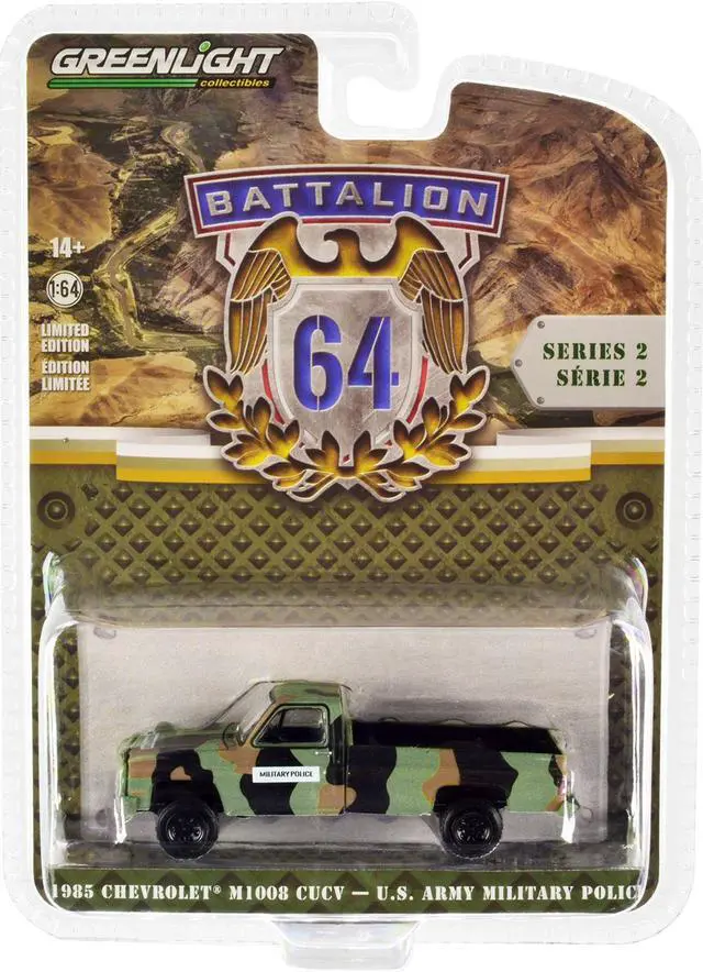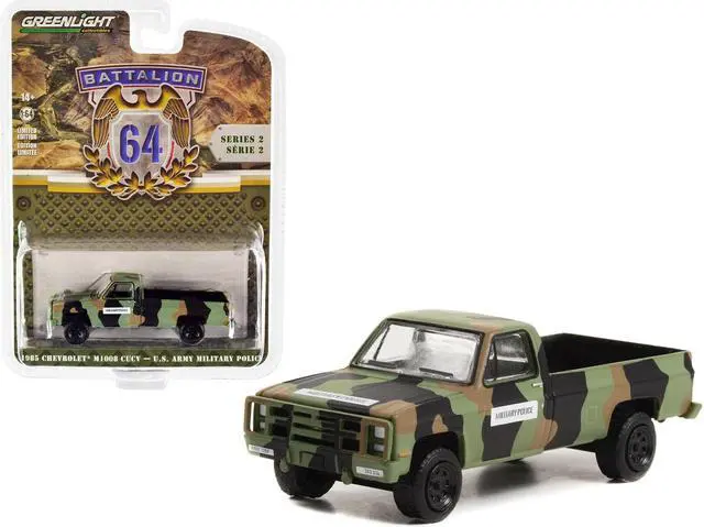 Brand new 1/64 scale diecast car model of 1985 Chevrolet M1008 CUCV Pickup Truck Camouflage "U. S. Army Military Police" "Battalion 64" Release 2 die cast model car by Greenlight.