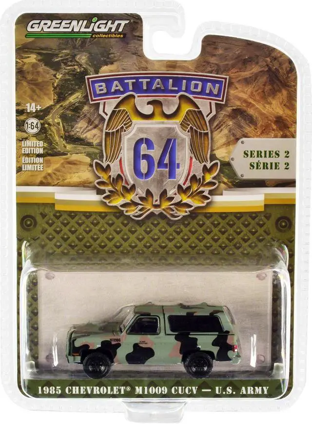 Brand new 1/64 scale diecast car model of 1985 Chevrolet M1009 CUCV Camouflage "U. S. Army" "Battalion 64" Release 2 die cast model car by Greenlight.
