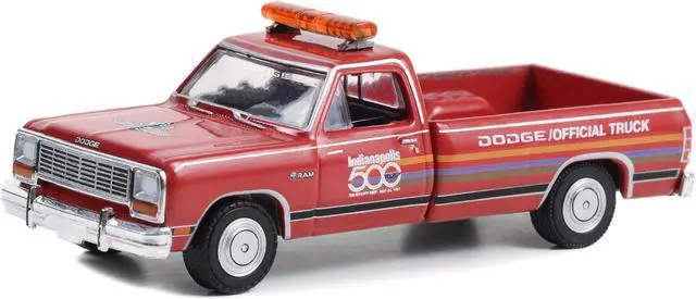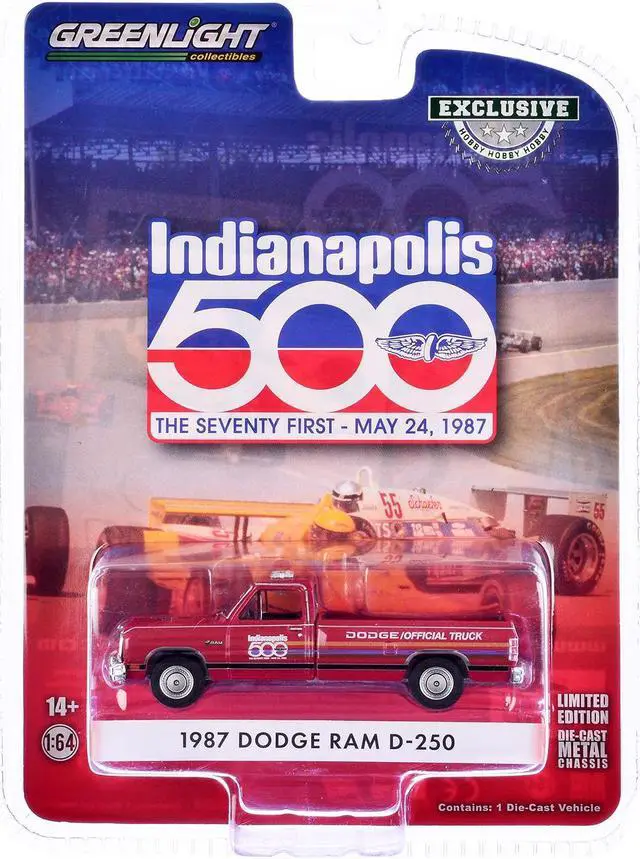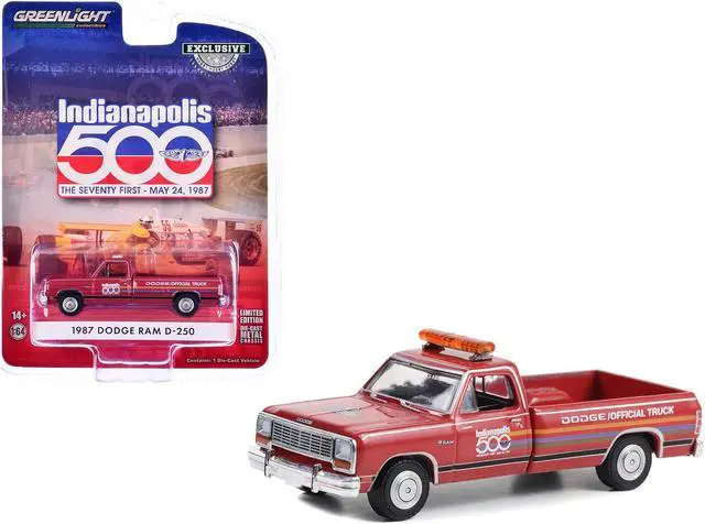 Brand new 1/64 scale diecast car model of 1987 Dodge Ram D-250 Pickup Truck "71st Annual Indianapolis 500 Mile Race Dodge Official Truck" Red with Stripes "Hobby Exclusive" Series die cast model car by Greenlight.
