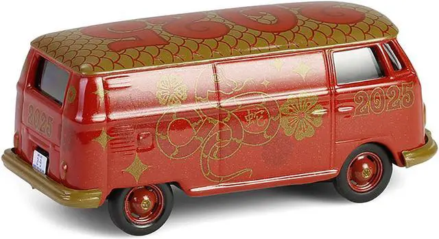 Brand new 1/64 scale diecast car model of Volkswagen Type 2 Panel Van "Chinese Zodiac 2025 Year of the Snake" Red with Graphics "Hobby Exclusive" Series die cast model car by Greenlight.