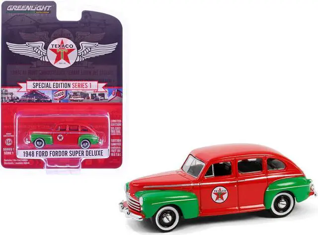 Brand new 1/64 scale diecast car model of 1948 Ford Fordor Super Deluxe "Texaco" Red with Green Fenders "Texaco Special Edition" Series 1 die cast model car by Greenlight.