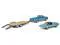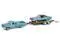 Brand new 1/64 scale diecast car models of 1969 Plymouth GTX Turquoise Metallic and 1967 Dodge D-200 Pickup Truck Turquoise Metallic with Flatbed Trailer "Graveyard Carz" (2012-Current) TV Series "Hollywood Hitch & Tow" Series 13 die cast model cars by Greenlight.
