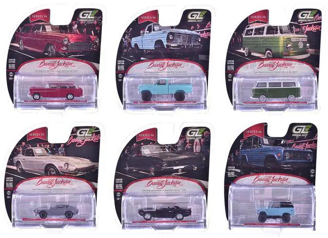 Brand new 1/64 scale diecast car models of "Barrett-Jackson" Series 16 Set of 6 Cars diecast model cars by Greenlight.