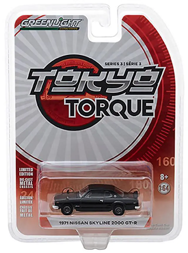 Brand new 1:64 scale car model of 1971 Nissan Skyline 2000 GT-R Black "Tokyo Torque" Series 3 die cast model car by Greenlight.