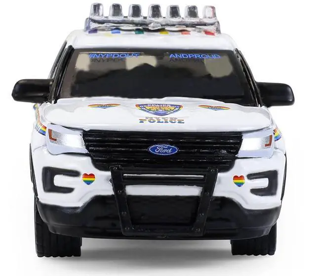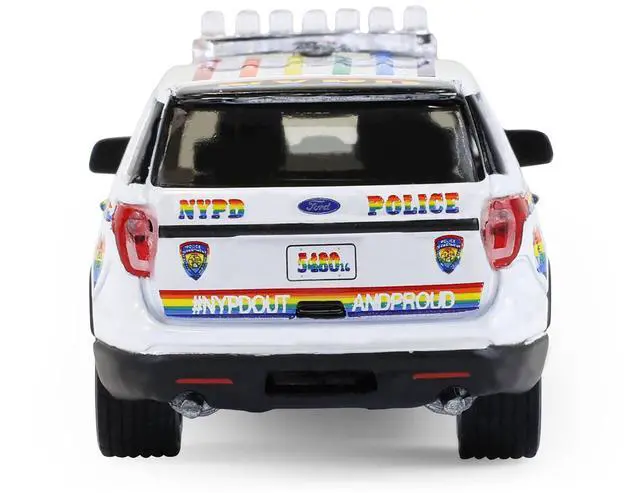Brand new 1/64 scale diecast car model of 2016 Ford Police Interceptor Utility "New York Police Department (NYPD) Pride Livery" White with Rainbow Stripes "Hot Pursuit" Series 47 die cast model car by Greenlight.