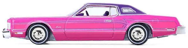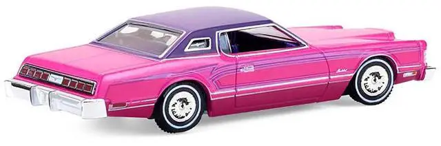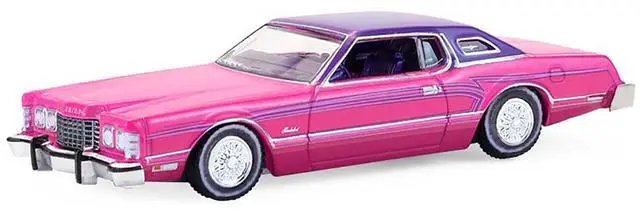 Brand new 1/64 scale diecast car model of 1975 Ford Thunderbird Lowrider Pink Metallic with Purple Top and Graphics with Purple Interior "California Lowriders" Series 7 die cast model car by Greenlight.