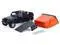 Brand new 1/64 scale diecast model of 2008 Jeep Wrangler Unlimited Rubicon Dark Charcoal with Modern Rooftop Camper "The Great Outdoors" Series 4 die cast model car by Greenlight.