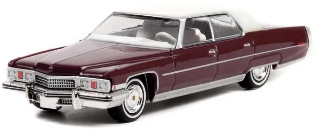 Brand new 1/64 scale diecast car model of 1973 Cadillac Sedan DeVille Burgundy with White Top "Rocky" (1976) Movie "Hollywood Series" Release 35 die cast model car by Greenlight.