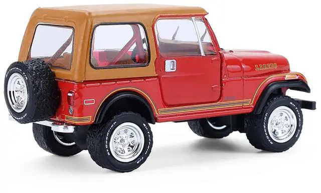 Brand new 1/64 scale diecast car model of 1980 Jeep CJ-7 Laredo Red with Tan Top "All Terrain" Series 17 die cast model car by Greenlight.