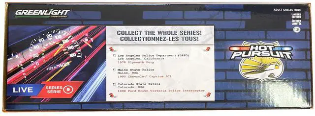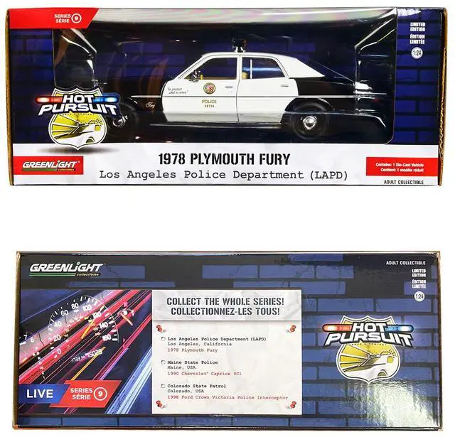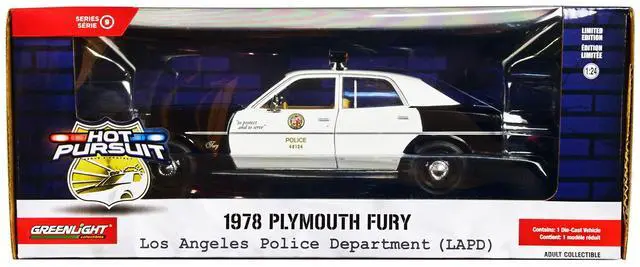 Brand new 1/24 scale diecast car model of 1978 Plymouth Fury Black and White "LAPD (Los Angeles Police Department) " "Hot Pursuit" Series 9 die cast model car by Greenlight.