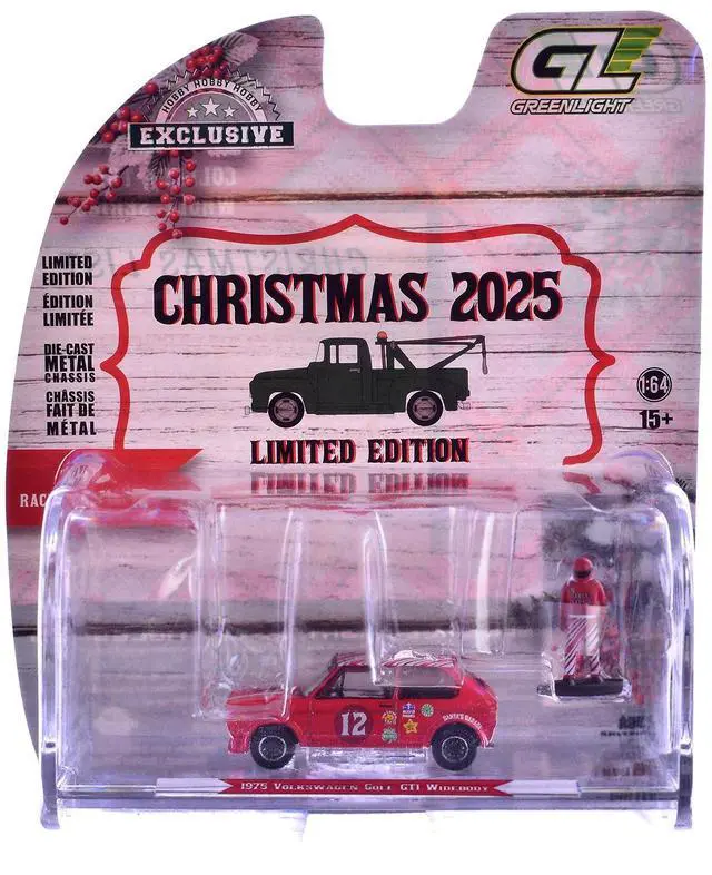 6) 1975 Volkswagen Golf GTI Widebody #12 Red with Graphics and Race Driver Figure.