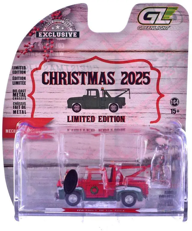 4) 1956 Ford F-100 Tow Truck Red and Green with Graphics and Mechanic Figure.