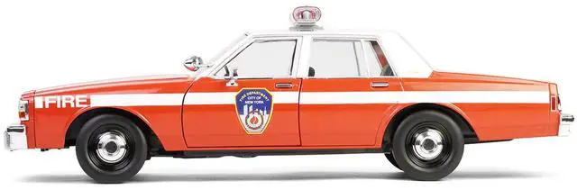 Brand new 1/18 scale diecast car model of 1987 Chevrolet Caprice 9C1 "FDNY (The Official Fire Department City of New York) " Red with White Top and Stripes "Artisan Collection" die cast model car by Greenlight.