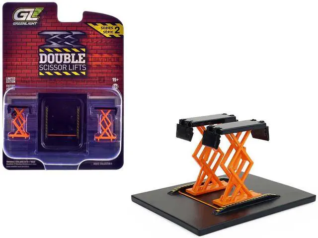 Brand new 1/64 scale diecast model of Automotive Double Scissor Lift Black and Orange "Double Scissor Lifts" Series 2 die cast model by Greenlight.