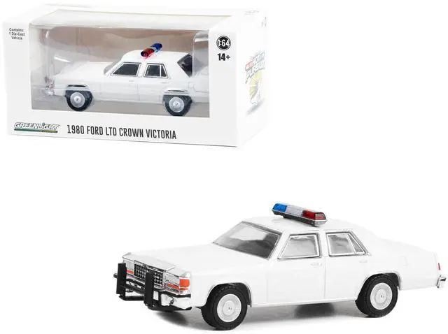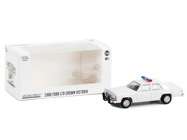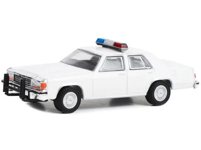 Brand new 1/64 scale diecast car model of 1980-1991 Ford LTD Crown Victoria Police White with Light Bar "Hot Pursuit" "Hobby Exclusive" Series die cast model car by Greenlight.