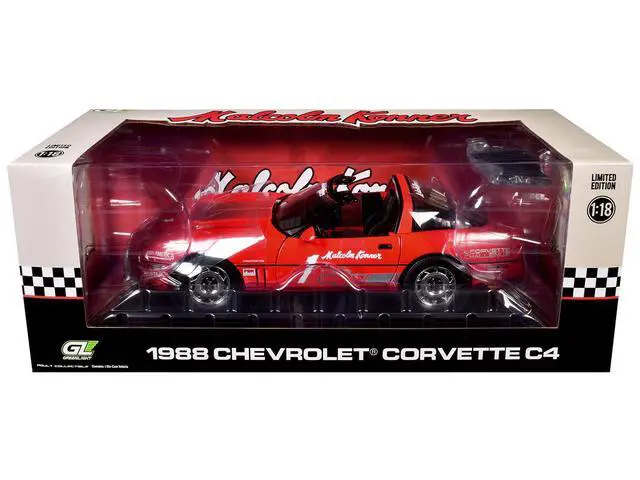 Brand new 1/18 scale diecast car model of 1988 Chevrolet Corvette C4 #1 Malcolm Konner "Corvette Challenge Race Car" Red with Black Top die cast model car by Greenlight.