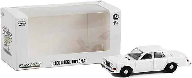 Brand new 1/64 scale diecast car model of 1980-1989 Dodge Diplomat Police Unmarked White "Hot Pursuit" "Hobby Exclusive" Series die cast model car by Greenlight.