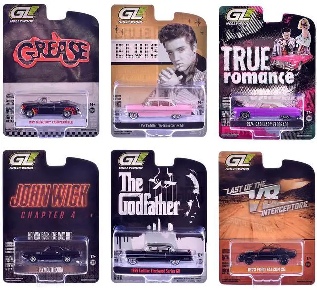 Brand new 1/64 scale diecast car models of "Hollywood Greatest Hits" (2025) Set of 6 pieces die cast model cars by Greenlight.