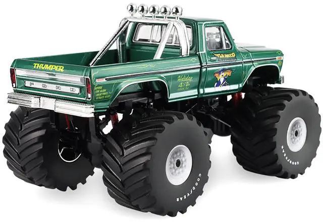 Brand new 1/43 scale diecast car model of 1975 Ford F-250 Monster Truck with 66-Inch Tires "Thumper" Green Metallic "Kings of Crunch" Series die cast model car by Greenlight.