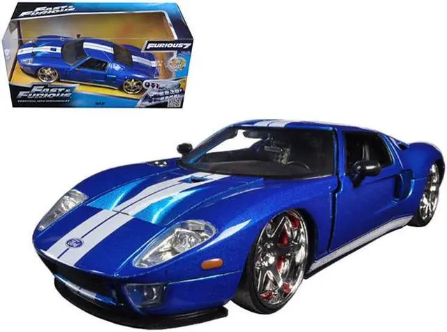 Brand new 1:24 scale diecast car model of Ford GT Blue with White Stripes "Fast & Furious 7" (2015) Movie die cast model car by Jada.
