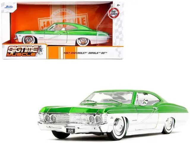 Brand new 1/24 scale diecast car model of 1967 Chevrolet Impala SS Green Metallic and White with White Interior "Bigtime Muscle" Series die cast model car by Jada.