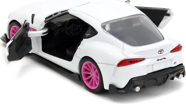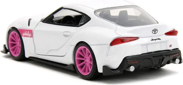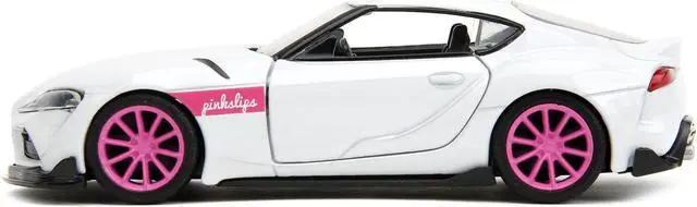 Brand new 1:32 scale diecast car model of 2020 Toyota Supra White Metallic with Pink Wheels "Pink Slips" Series die cast car model by Jada.