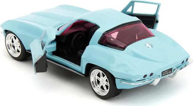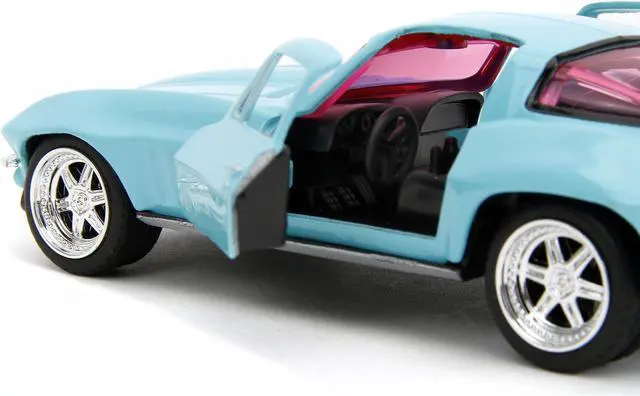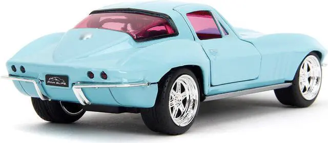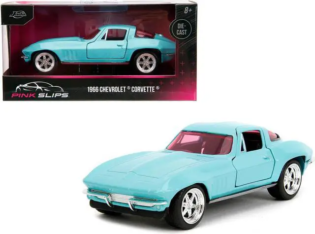 Brand new 1/32 scale diecast car model of 1966 Chevrolet Corvette Light Blue with Pink Tinted Windows "Pink Slips" Series die cast car model by Jada.