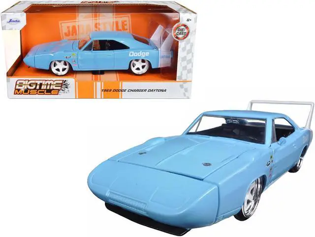 Brand new 1/24 scale diecast car model of 1969 Dodge Charger Daytona Light Blue with White "Bigtime Muscle" Series die cast model car by Jada.