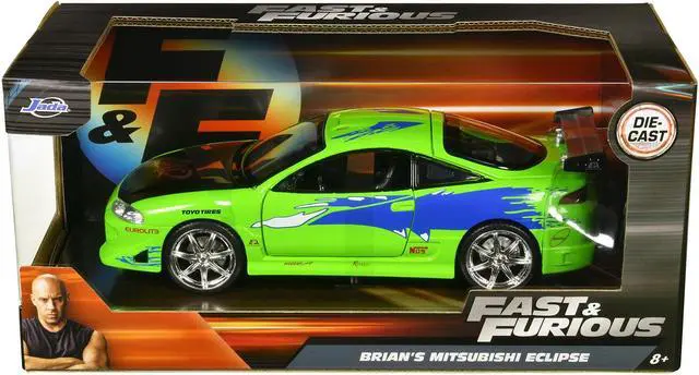 Brand new 1/24 scale diecast car model of Brian's Mitsubishi Eclipse Green with Black Hood and Graphics "The Fast and The Furious" (2001) Movie die cast model car by Jada.