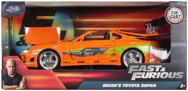 Brand new 1/24 scale diecast car model of Brian's Toyota Supra Orange with Graphics "Fast & Furious" Movie die cast model car by Jada.