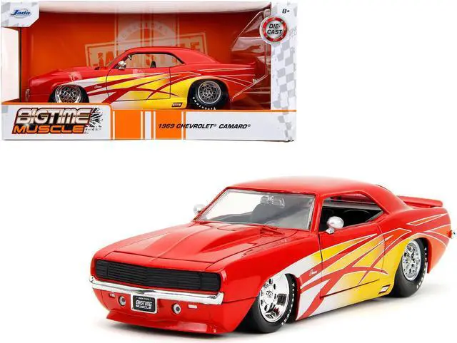 Brand new 1/24 scale diecast car model of 1969 Chevrolet Camaro Red with Graphics "BigTime Muscle" Series die cast model car by Jada.