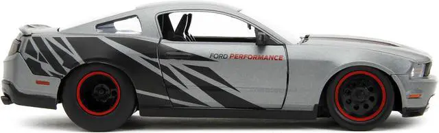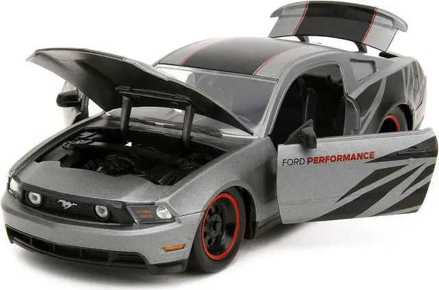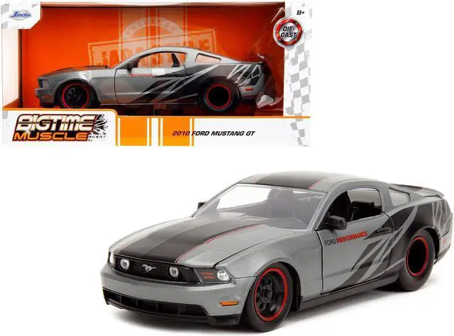 Brand new 1:24 scale diecast car model of 2010 Ford Mustang GT Matt Gray Metallic with Black Graphics and Stripes "Ford Performance" "Bigtime Muscle" Series die cast model car by Jada.