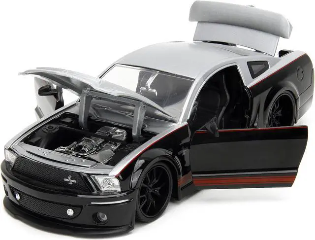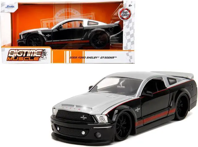 Brand new 1/24 scale diecast car model of 2008 Ford Shelby Mustang GT-500KR Silver and Black with Red Stripes "Bigtime Muscle" Series die cast model car by Jada.