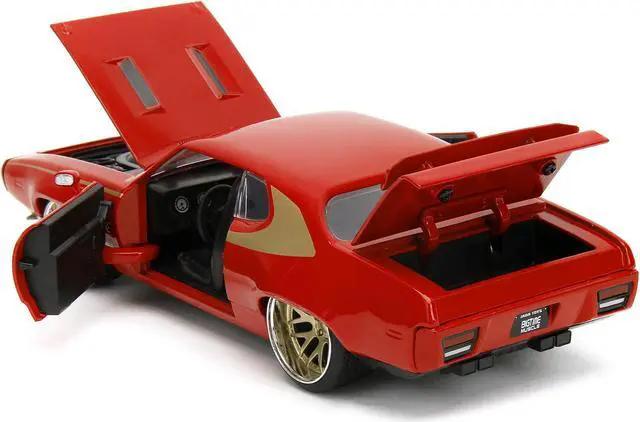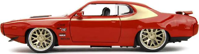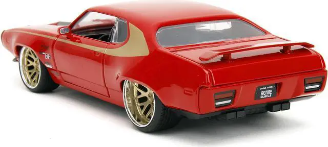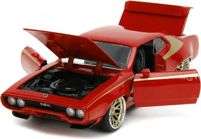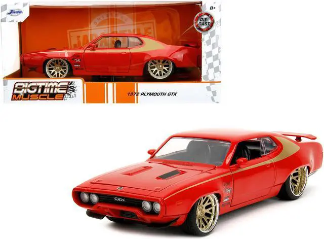 Brand new 1/24 scale diecast car model of 1972 Plymouth GTX Red with Gold Graphics "Bigtime Muscle" Series die cast model car by Jada.